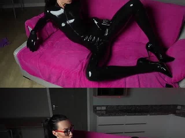 Smoking Hot Brunette Milf in Latex Catsuit and Boots