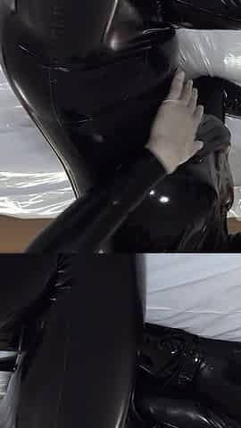 Selffuck in latex catsuit