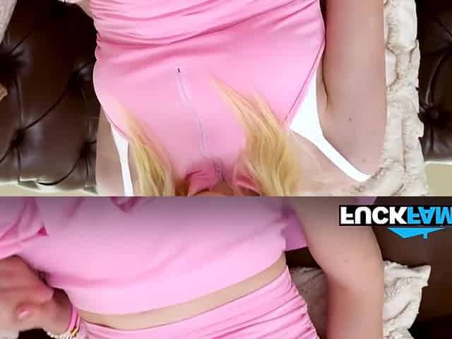 Buxom platinum-blonde sitter Bonnie Kinz pleasures her boss and drains his cock