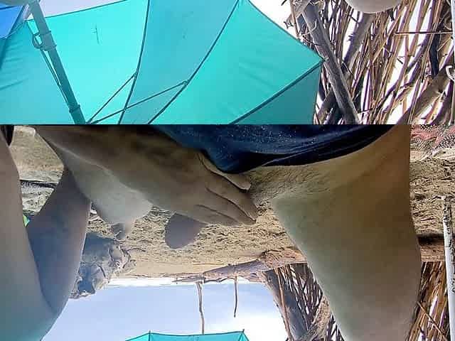 Miss Creamy the schoolteacher gives a handjob to my manhood under a beach umbrella in the rain