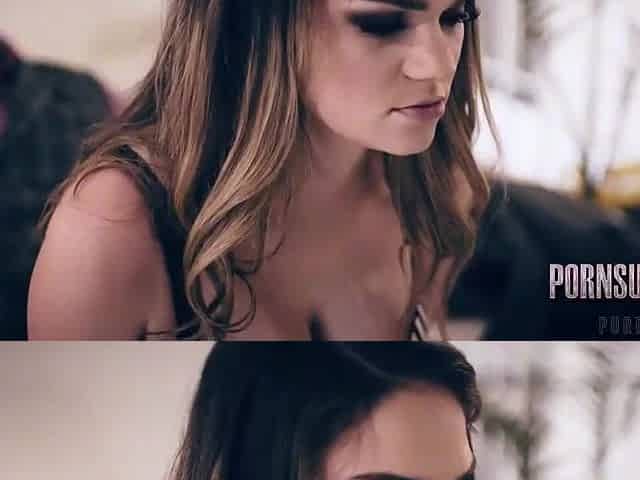 Blair Williams gets caught in a naughty scenario in lingerie and stockings