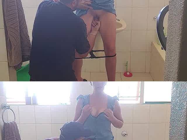 Stepdaughter is caught in the shower by her stepfather