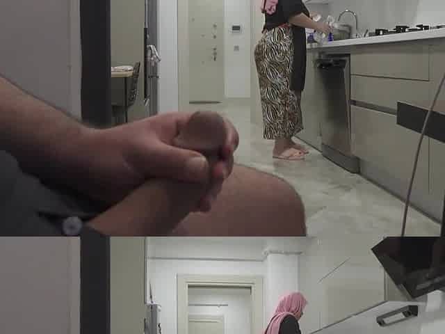 MAID CATCHES GUY WANKING
