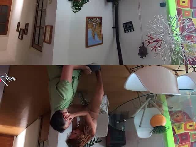 Stepsister caught on CCTV cam getting intimate on the couch without clothes