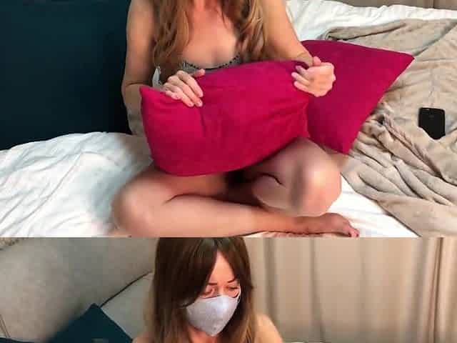 Caught stepsister with big tits watching and pleasuring herself to porn