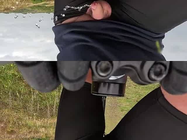 Hunk pissing in public during the time that cycling. Caught in the act!