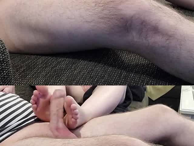 Caught My Stepsister Masturbating Then She Pushed Her Feet On My Big Hard Cock. Huge Cumshot