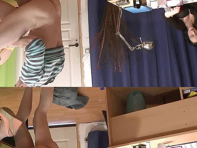 Frida caught masturbating with a vibrator gets fucked in the mouth and pussy
