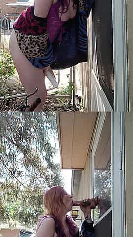 Redhead Sucks Sex toy and Uses Sex toy and Tries NOT to get caught