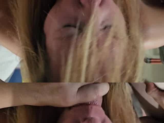Ash-blonde Lina-Mila gets caught cheating on the phone while giving a sloppy blowjob