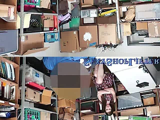 Two shoplifters Bonnie Grey and Maya Bijou caught stealing on CCTV then get drilled by LP officer inside LP office