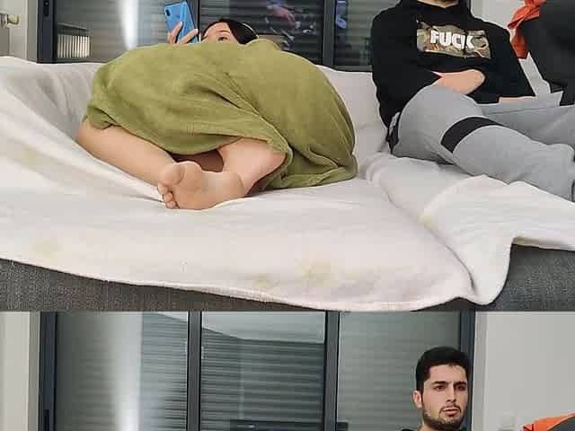 Gal masterbating in living room during the time that family is upstairs