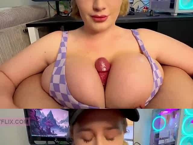 Busty blonde caught horny stepbro jerking off and decided to help him