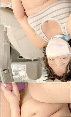 Horny ebony babe caught masturbating with a dildo in a grocery store parking lot