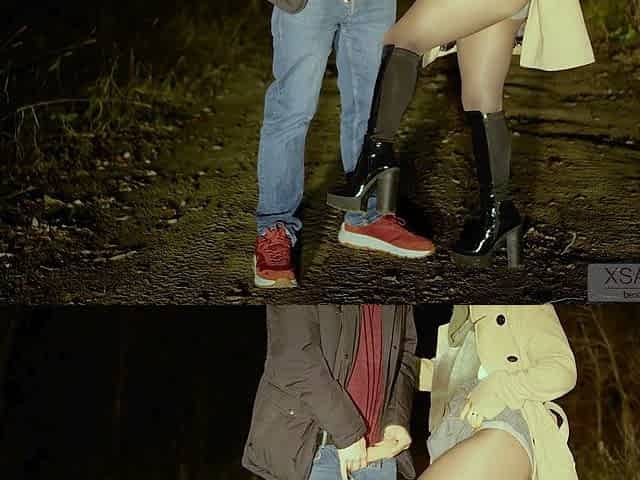 Horny babe Andreza penetrates her pussy in public, almost caught by a stranger