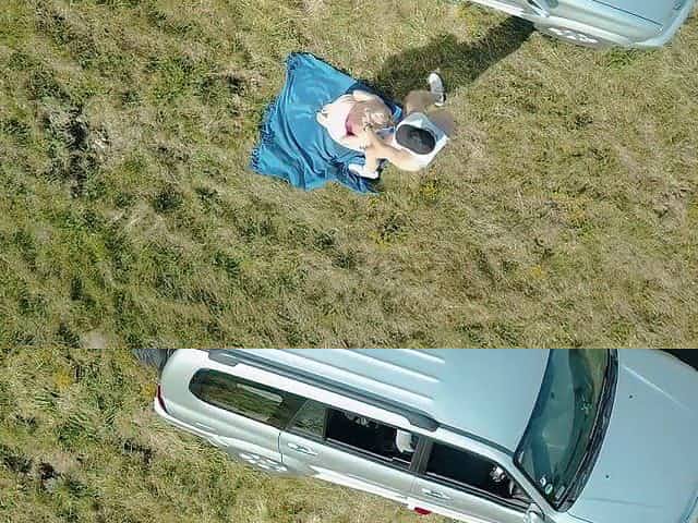 Dron caught Sexy Girl in Public Park during hot facefuck and doggy pounding