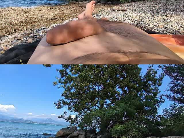 French Teacher Masturbates Student Bull on Public Nudist Beach Caught by Voyeur Jerking Huge Cock