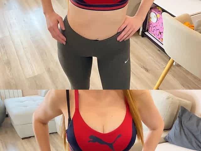 Preggy fitness Blond with lengthy legs on Hotel Room