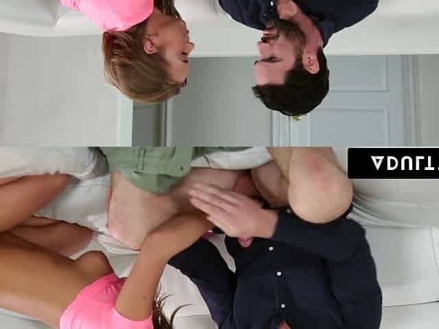 Miniature And Petite Cutie Aria Banks Caught Her Tall Stepbro Chris Jerking Off In His Room