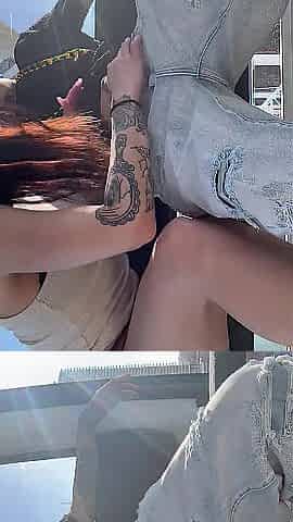 Hot babe Karol and Sofia tease a driver by getting naughty in public