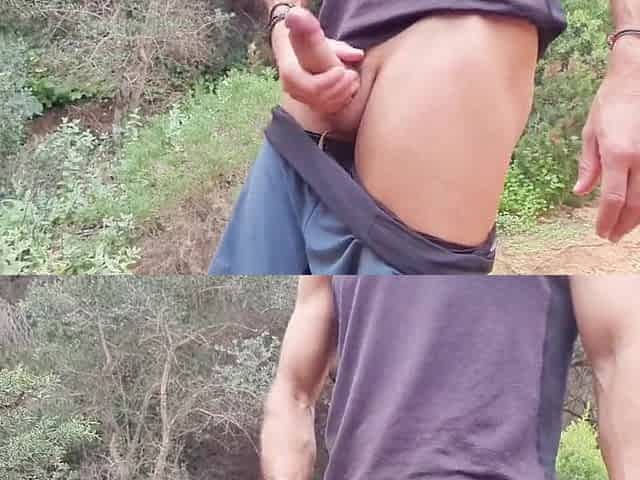 Masturbating my rod and my taut booty in nature - nearly caught