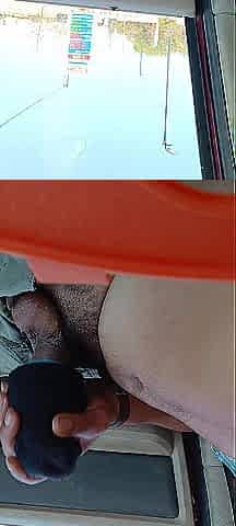 Wanking in public parking lot. Cum on Porsche steering wheel.