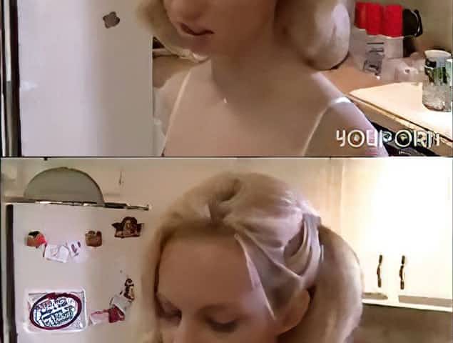 Blonde gets interviewed, works, and gets nailed with a mouthful