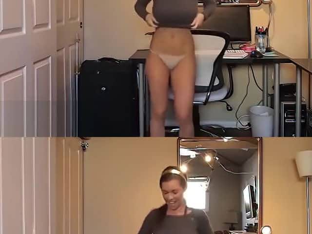 Here is a hot behind the scenes video of Christine posing for some pictures in a sheer censored top and some super tiny blue jea