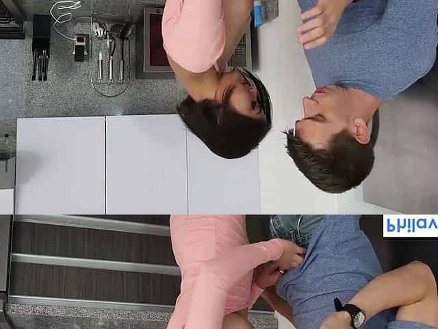 Amateur handjob and a blowjob in the kitchen by a mature wife
