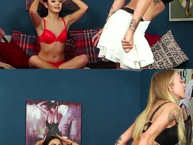 CFNM video of two sexy babes undressing for one dude - Jessica & Scarlett
