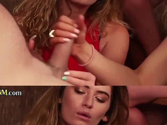 Beautiful adult film actress gives a great handjob and blowjob.