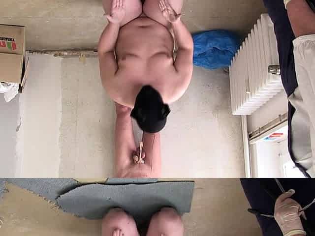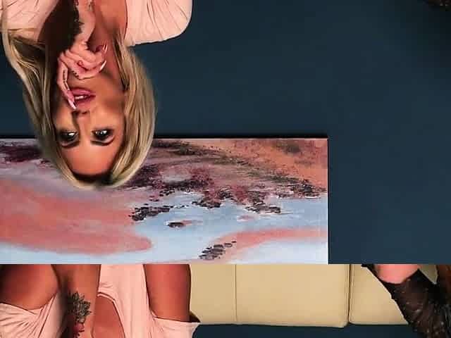 Ruby Mae wearing nylon stockings watching her boss jerk off