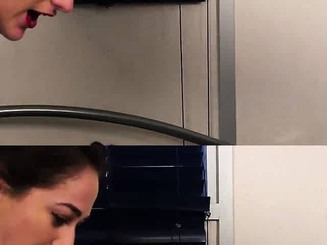 Ass-loving slut in red T shirt says " Bend over ! " (+ sound )