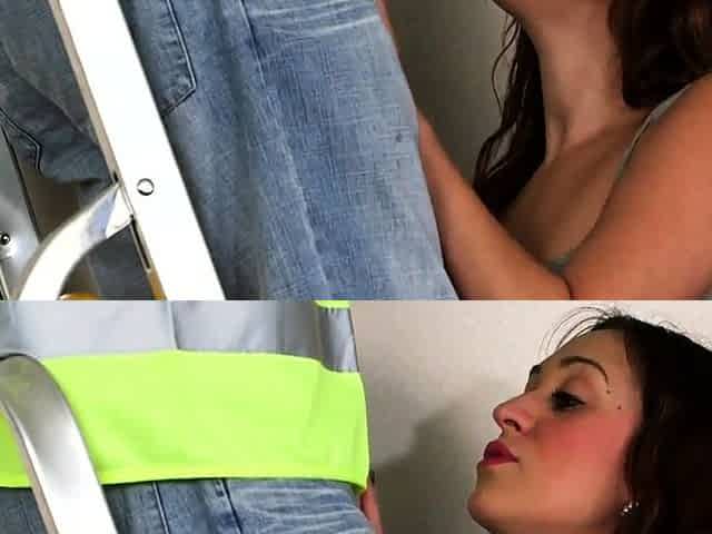 Brunette bitch Aria Valencia shows off her pussy and thong