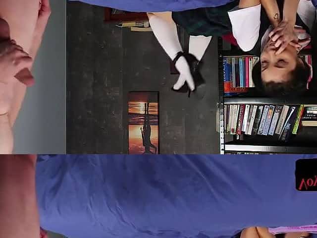 Nerdy nympho in short skirt Malena gives deepthroat BJ and gets poked hard