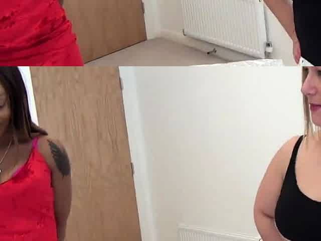 Amateur CFNM Ebony sucks cock in 3some