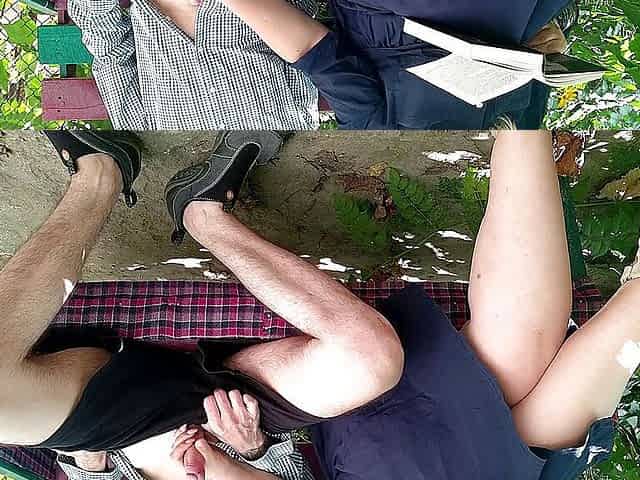 Gorgeous brunette gives head in the woods, oral creampie & cum swallow