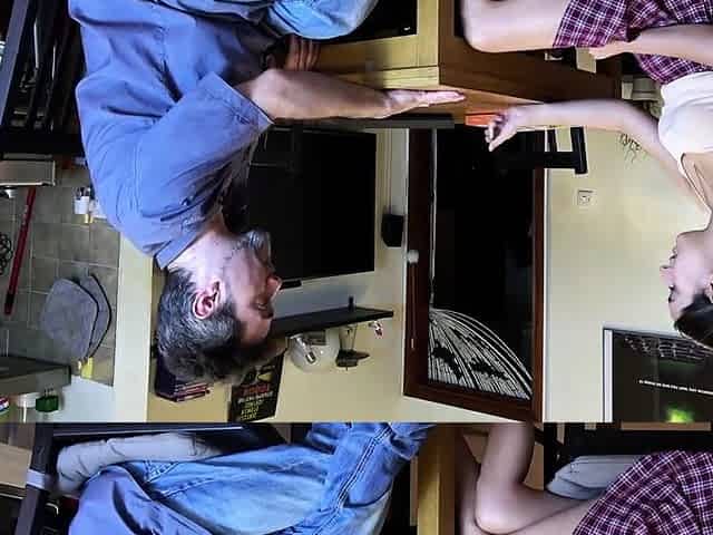 Brunette Roxee Couture having fun while watching her boss jerking off