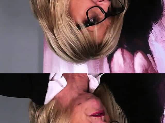 Office redhead CFNM mature gets cum on nylons after blowjob and handjob