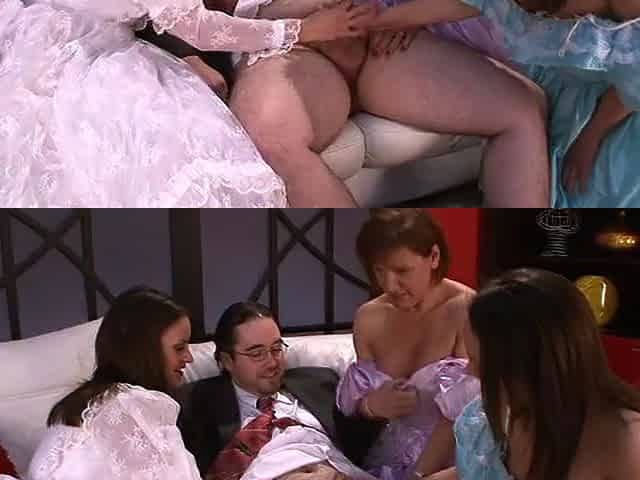 Classy CFNM MILFS suck cock in group