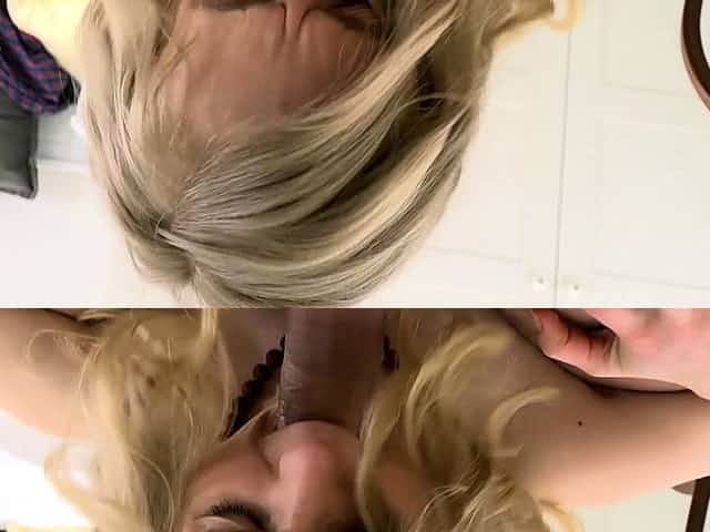 Blond amazing gal swallowing black dick