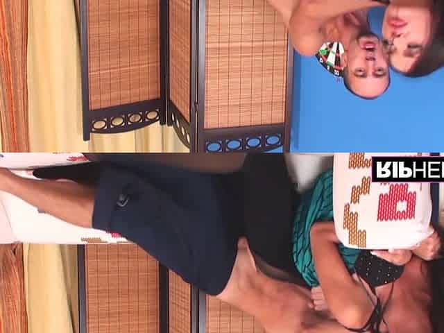 Oriental Woman Tears Open Hose and Masturbates