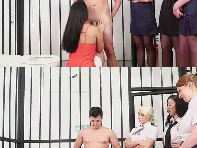 Female CFNM coppers blowing prisoners cock