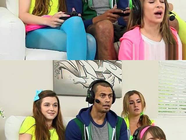 Cfnm gaming babes fuck black dude on couch