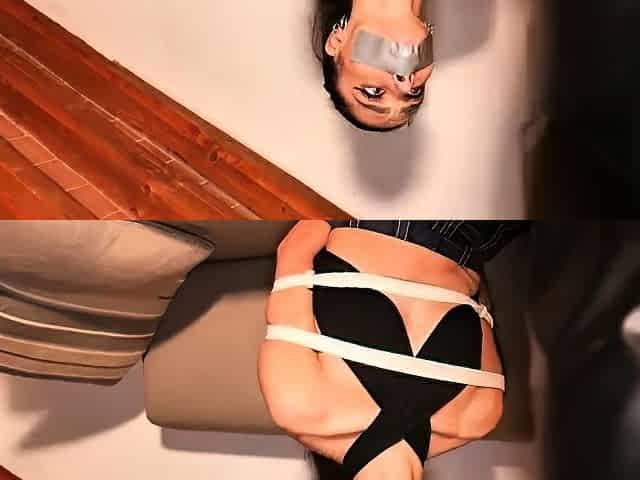 Sexy college girlfriend handcuffed in sixty-nine position for rough sex bondage