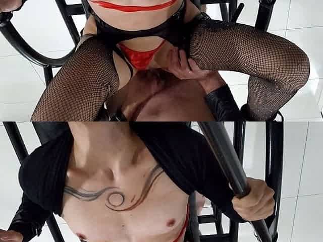Mistress Pegging Sub Chained To The Ceiling