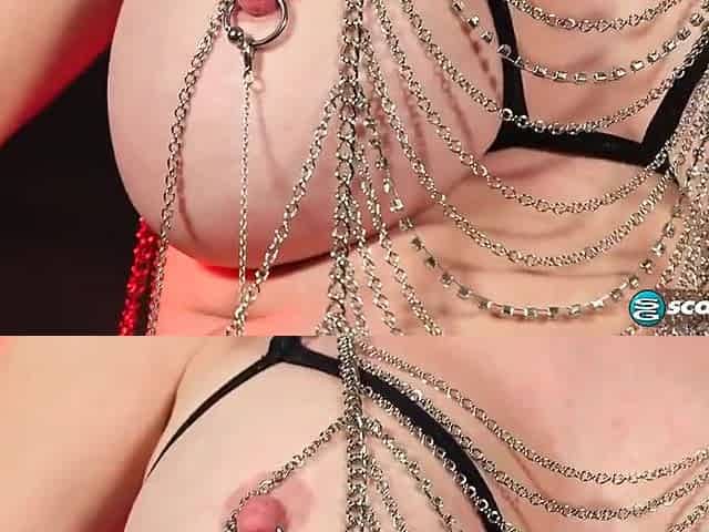 chained, tied boobs, toying (slave Jane)