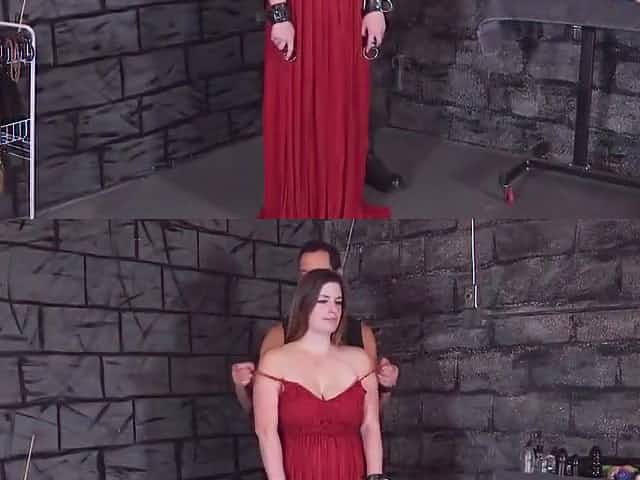 Sexy Brunette Chained Up For Two Men Enjoyment