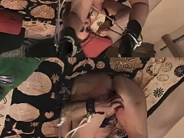 Mia Li bound and chained on floor while rubbed with a vibrat