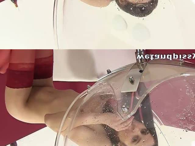 Effy Sits On Her Transparent Chair Naked And Wearing Black Fishnet Stockings And Masturbates With Her Fingers